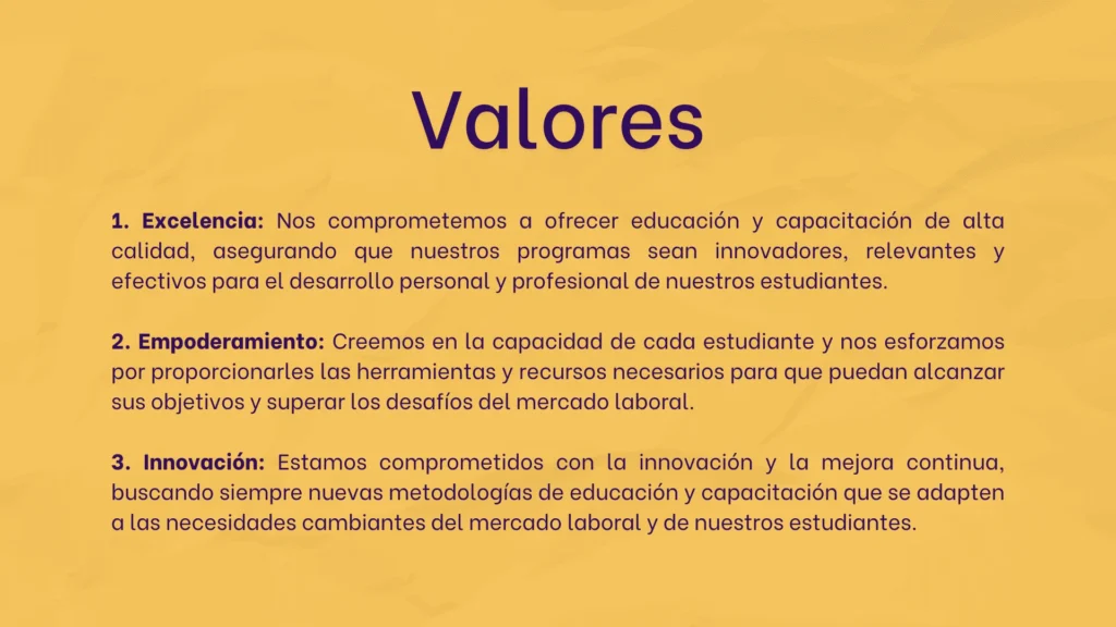 • Misión, visión y valores